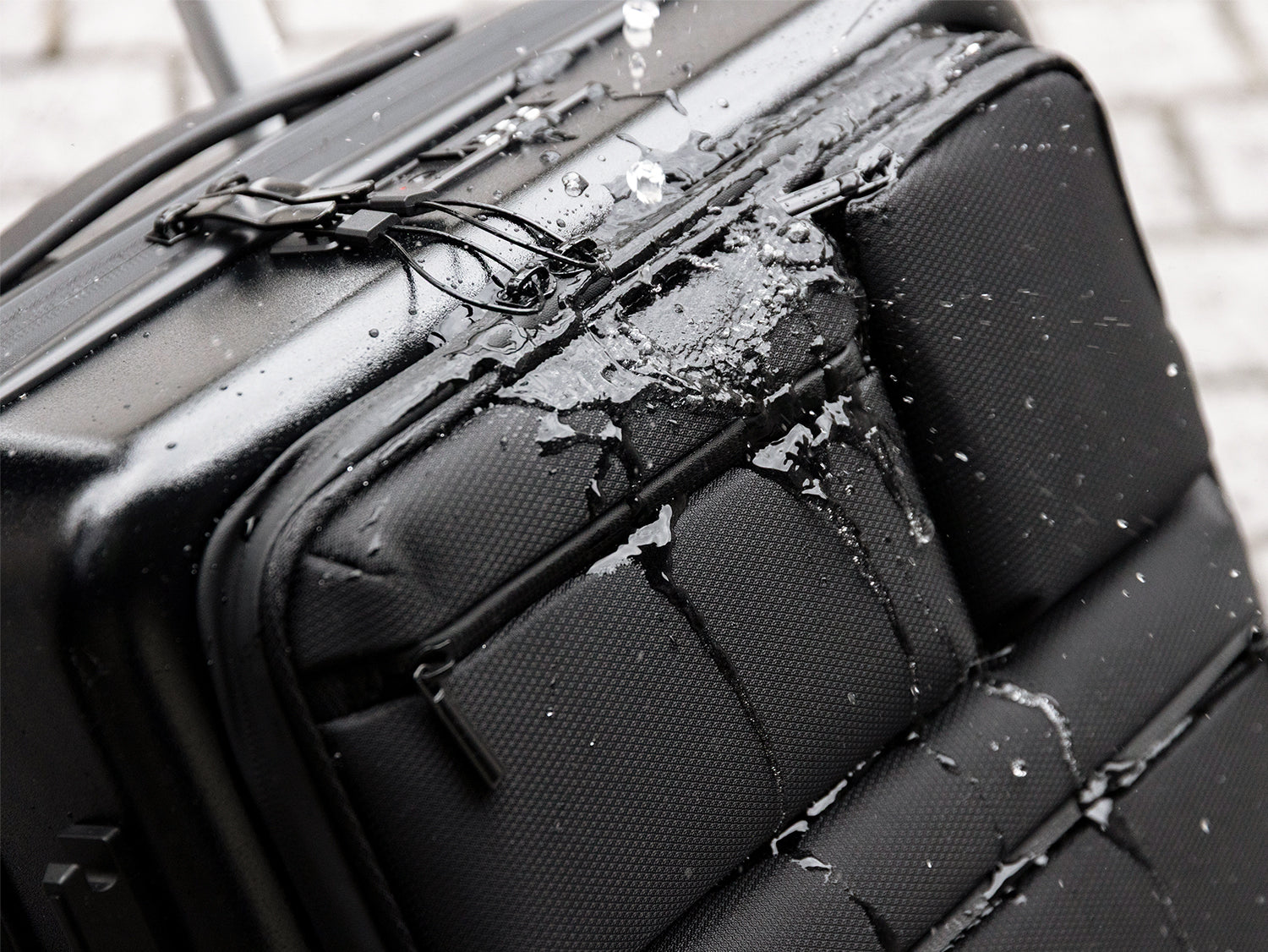 ハード部分だけでなく、布製のフロントポケットにも撥水加工を施しました。