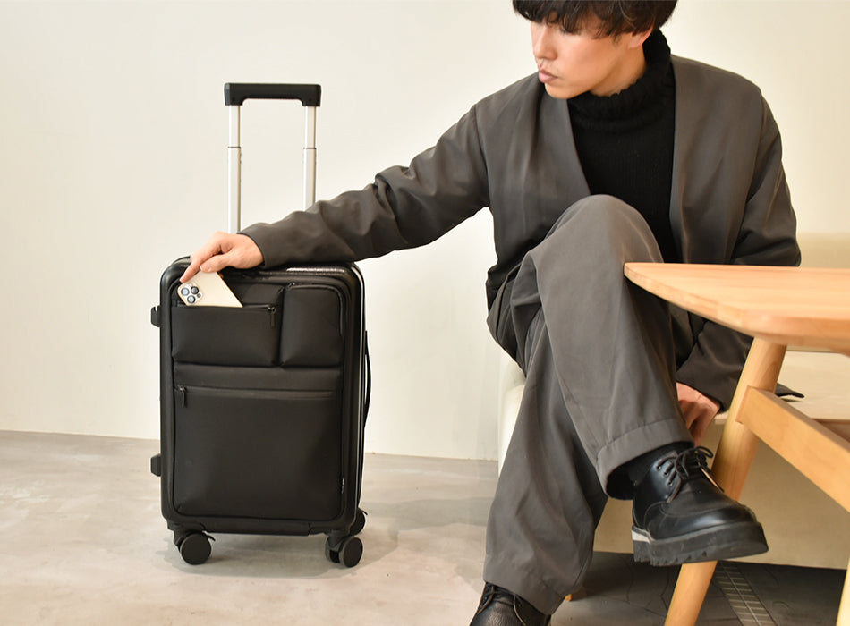フロントオープン部分には、前面に3つ・内側に4つ、計7つの収納ポケットを配置。