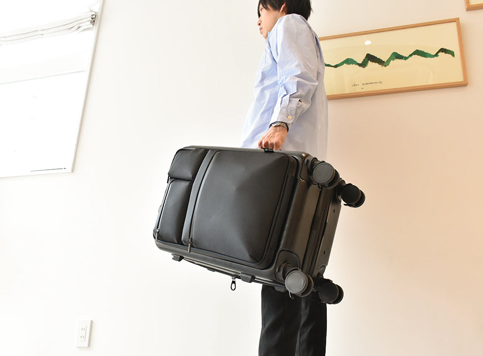 クロスベルトと仕切りパネルで荷崩れを防ぎ、メッシュポケットには小物類もすっきり整理できます。