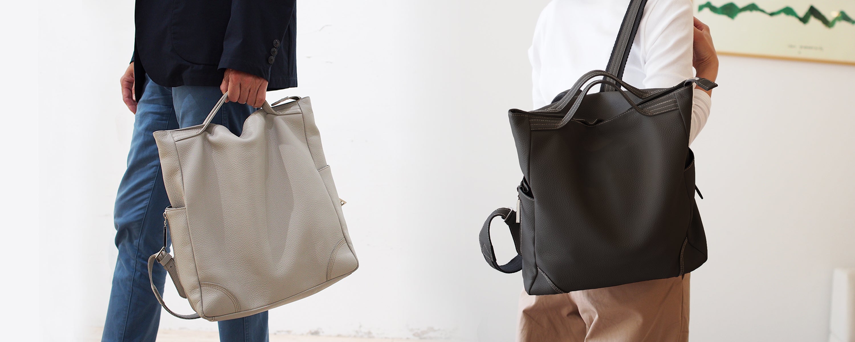 愛知県近郊で一貫生産した地産地消のあいちレザー本牛革リュック&トートバッグ